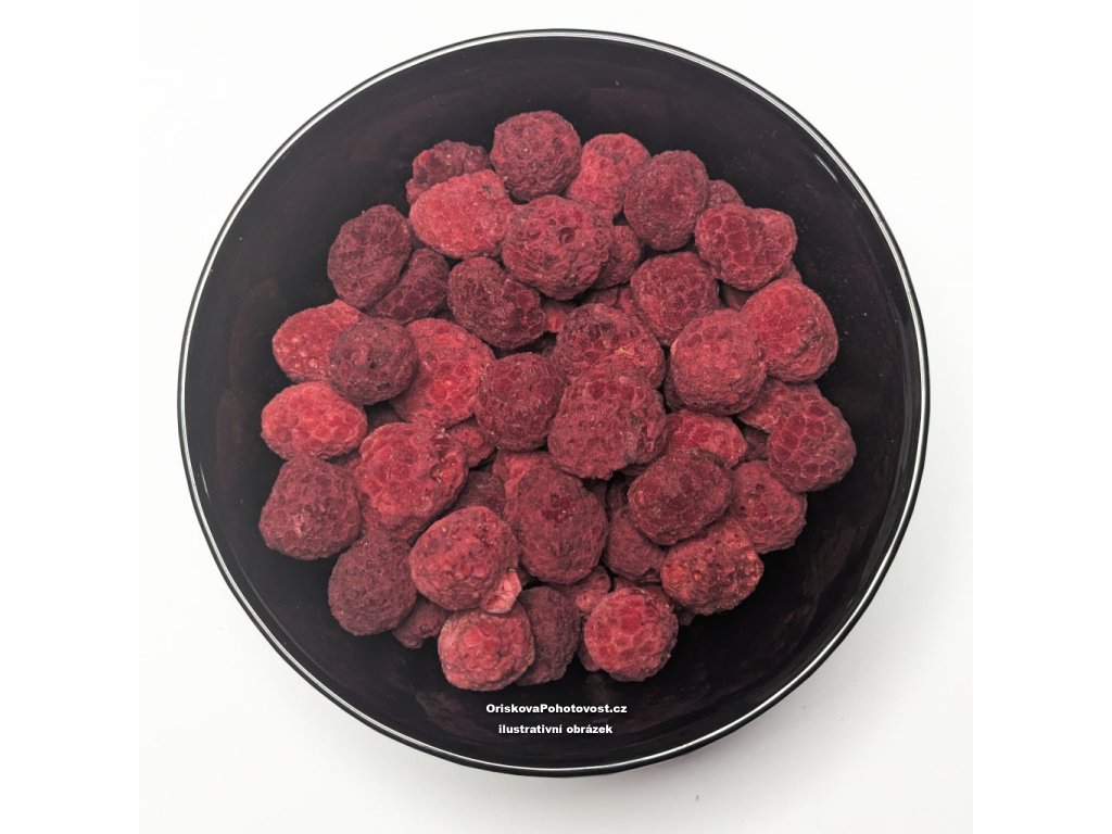 - Díky odstranění vody jsou lyofilizované plody extrémně lehké. Přibližně 100 gramů lyofilizovaných malin odpovídá zhruba 700–800 gramům čerstvých plodů.